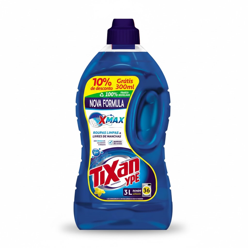 Lava-roupas Líquido Tixan, da marca Ypê, em embalagem promocional de 3 litros. É um detergente líquido desenvolvido para garantir uma limpeza profunda e eficiente das roupas, com um toque de frescor primaveril. Ideal para lavagens diárias, ele conta com uma fórmula avançada que remove manchas e sujeiras com facilidade, proporcionando roupas limpas, macias e perfumadas. Sua fragrância inspirada na primavera deixa um aroma agradável e duradouro nas roupas, lembrando a leveza de flores frescas e um ambiente sempre renovado. Sua fórmula é pensada para atuar tanto em roupas brancas quanto coloridas, sem agredir os tecidos ou desbotar as cores. Além de ser poderoso contra manchas, é eficiente mesmo quando utilizado na programação de baixa temperatura da máquina de lavar, ajudando a economizar energia e tempo.