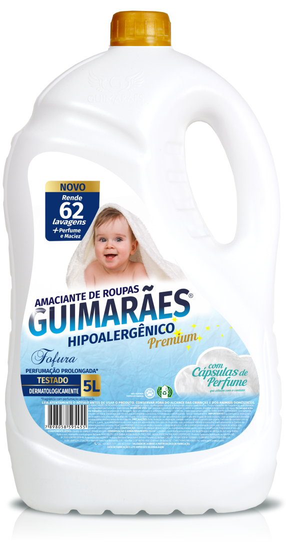 Não despeje o produto diretamente sobre as roupas, dissolva previamente em água. No tanque e/ou na máquina: após o processo de lavagem, faça um enxágue e adicione 2 tampas e ½ (90 mL, meio copo americano) de AMACIANTE GUIMARÃES, previamente diluído em água. Deixe agir por 10 minutos e complete o processo, torcendo ou centrifugando. Seque normalmente.