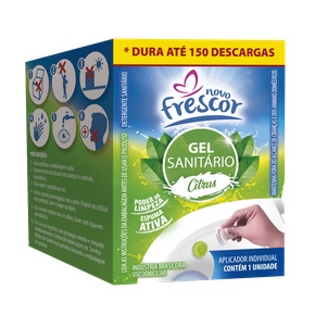 Deixe o banheiro sempre limpo, cheiroso e agradável com o Gel Sanitário Novo Frescor. Desenvolvido para quem busca praticidade na limpeza do vaso sanitário, ele é aplicado diretamente na porcelana, abaixo da borda, formando um ponto de gel que age a cada descarga. Assim, o produto auxilia na remoção de resíduos, reduz odores desagradáveis e mantém a sensação de banheiro limpo por muito mais tempo, sem necessidade de cestinhas ou suportes plásticos.